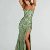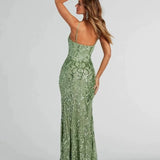 Robe Longue Vert Sauge à Sequins – Éclat Sensuel pour Vos Grandes Occasions