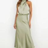 Robe Satin Vert Sauge – Élégance Moderne & Silhouette Fluide